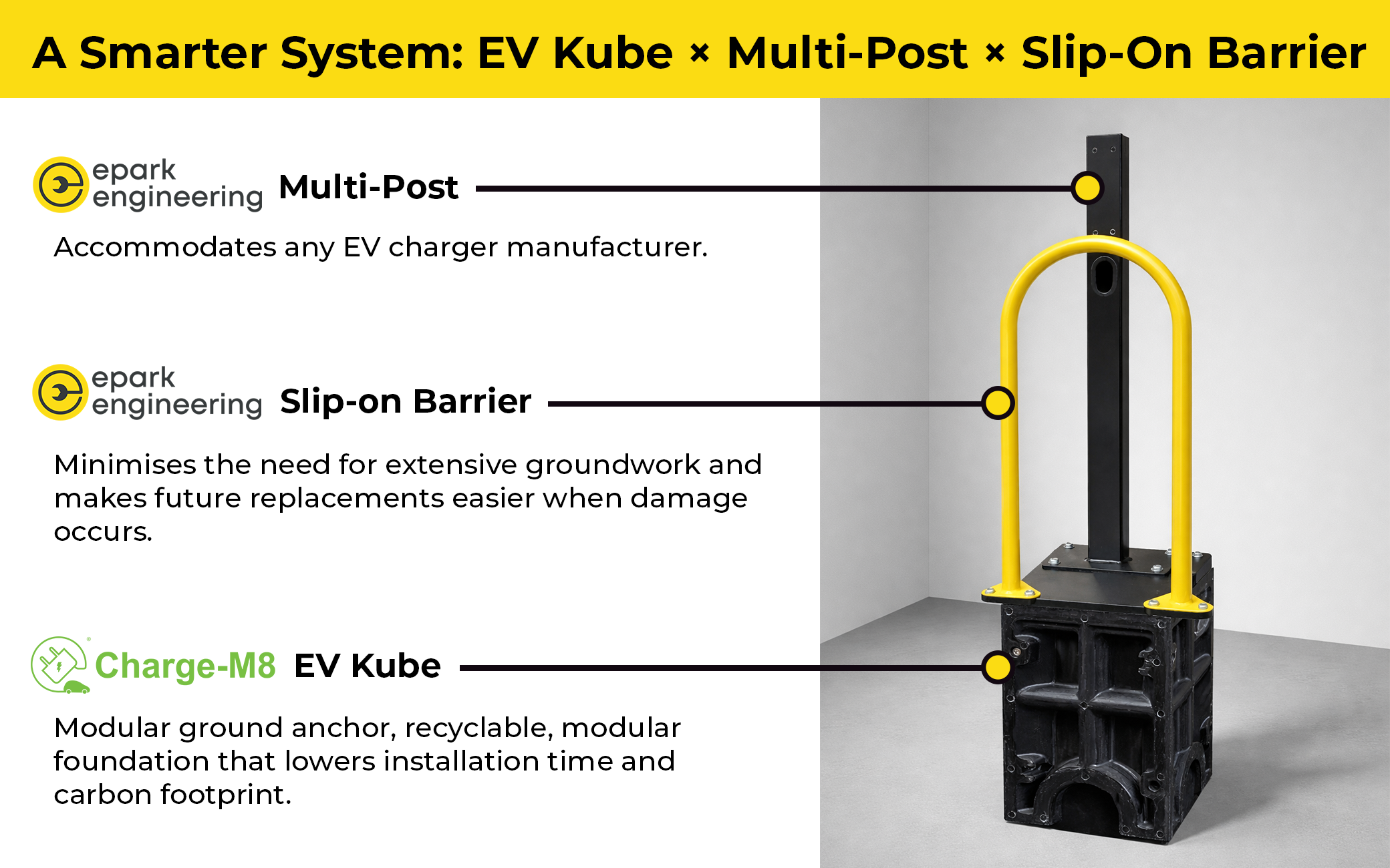 The EV Kube and epark engineering Multi-Post system represents a shift from fragmented installation methods to integrated, installer-first solutions.