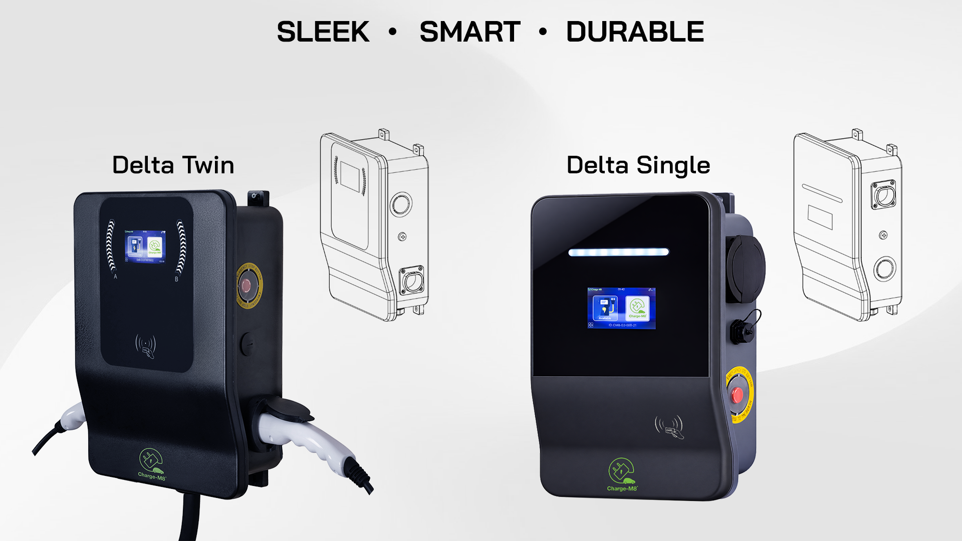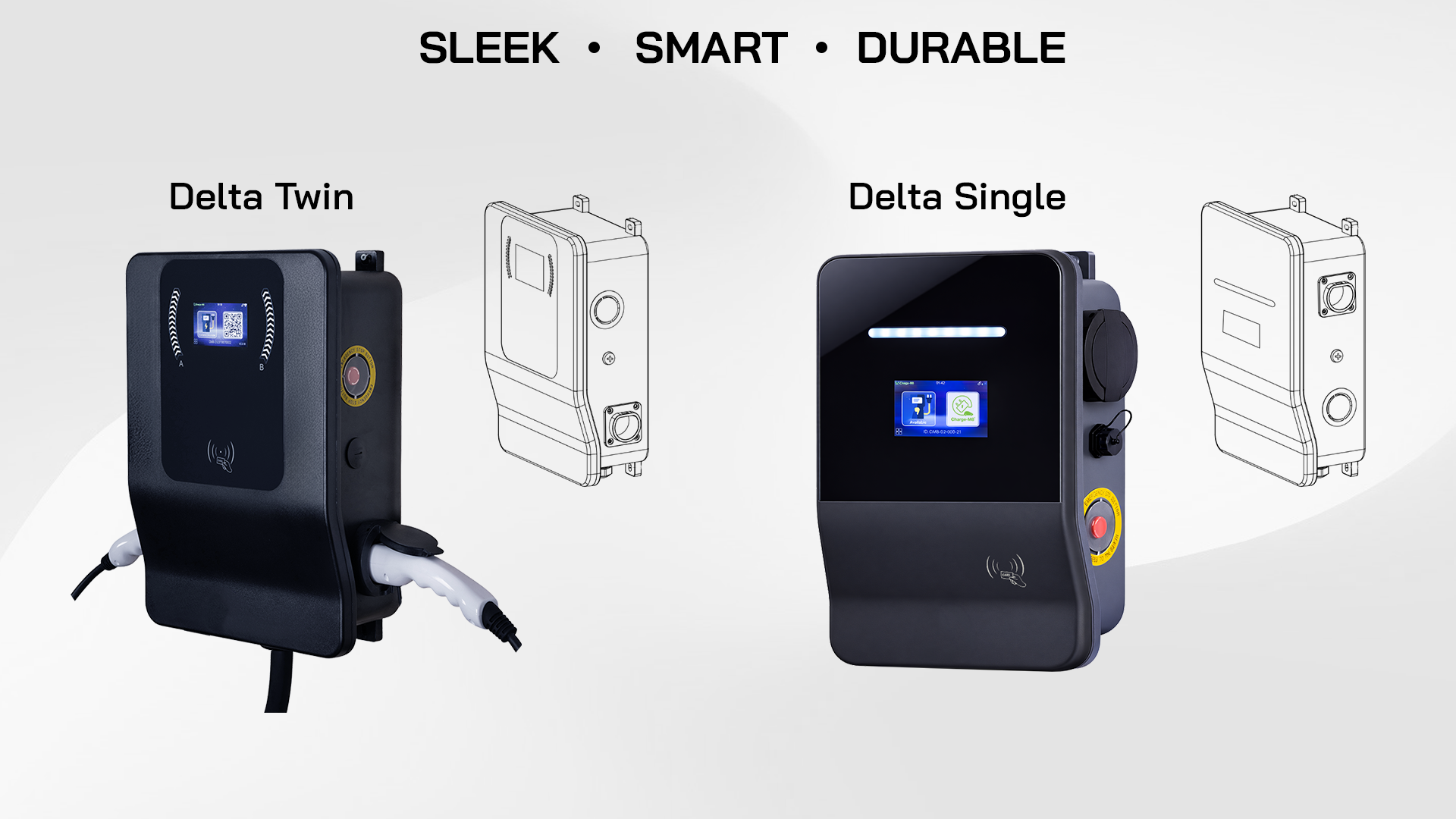 The Delta AC Charger is offered in both Single and Twin configurations, enabling flexible installation across different site layouts and usage scenarios.